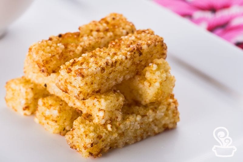 43. Quadradinhos de tapioca e queijo: essa receita lembra bolinhos de arroz, mas com um sabor mais suave. É uma boa opção de petisco para quem tem intolerância a glúten.